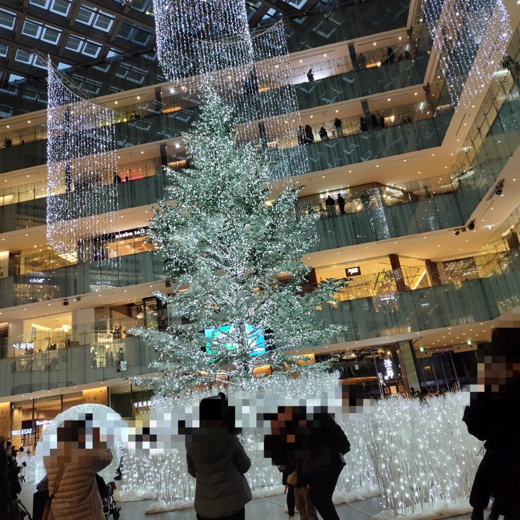 お参りを済ませた後、東京駅の近くにあるKITTEへ立ち寄り、クリスマスツリーを見て感動!